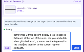 تتيح الوظائف القوية للذكاء الاصطناعي للمستخدمين تحديد التغييرات المحددة التي يرغبون بها على صفحة الويب، وينشئ الملحق تعديل نص المستخدم الذي يطبق هذه التغييرات تلقائيًا. يمكن للمستخدمين تكرار تعديلاتهم، ويدعم الملحق استيراد النصوص الموجودة من مستودعات شائعة. مع واجهة سهلة الإدارة لتتبع التعديلات النشطة، يبسط Improv التعديلات المستمرة وصيانة النصوص المخصصة.